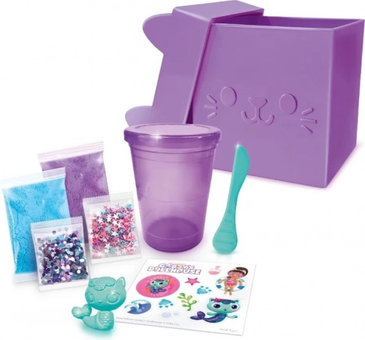 Diese Knetmasse aus der Reihe Gabis Katzenhaus, verpackt in einer niedlichen Box nach dem Vorbild derjenigen, in der die Hauptfigur der Serie ihre Miau-Miau-Post-Päckchen erhält, sorgt für fantastische, kreative Unterhaltung. Eigenen Schleim herstellen, dekorieren, drücken und ziehen – das lieben Kinder einfach!