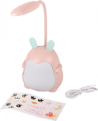 Diese entzückende LED-Lampe macht jedes Kinderzimmer gemütlicher. Sie bietet weißes Arbeitslicht für Konzentration sowie farbige RGB-Beleuchtung für einen ruhigen Abendmodus. Der flexible Hals erlaubt eine einfache Einstellung des Leuchtwinkels, die kompakte Größe spart Platz auf dem Schreibtisch.