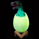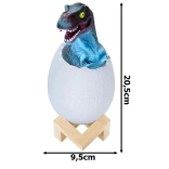 Ein realistischer Dinosaurier in einem gesprungenen Ei auf einem Holzständer belebt jedes Kinderzimmer und erfreut Dinosaurier-Fans.