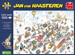 Tauchen Sie ein in die Welt der detailliert ausgearbeiteten und humorvollen Illustrationen von Jan van Haasteren. Sein einzigartiger Stil ist erkennbar durch Bilder voller Witz und fröhlicher Situationen. Sie finden hier auch viele charakteristische Details, wie die Haiflosse und Nikolaus, die Fans auf der ganzen Welt erfreuen.