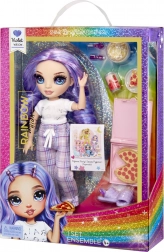 Entdecken Sie die Welt der Farben und des Stils mit der Puppe Rainbow High Junior High – Violet Purple. Diese Sammel- und Spielpuppe sieht fantastisch aus in ihrem lila karierten Pyjama, mit weichem Shirt und passenden Hausschuhen. Lange violette Haare, markante Wimpern und Glasaugen verleihen einen realistischen und bezaubernden Look, den Kinder lieben.