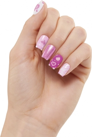 • Kreative Maniküre – Sticker, Glitzer, Mini-Lack und Tools zur Gestaltung.