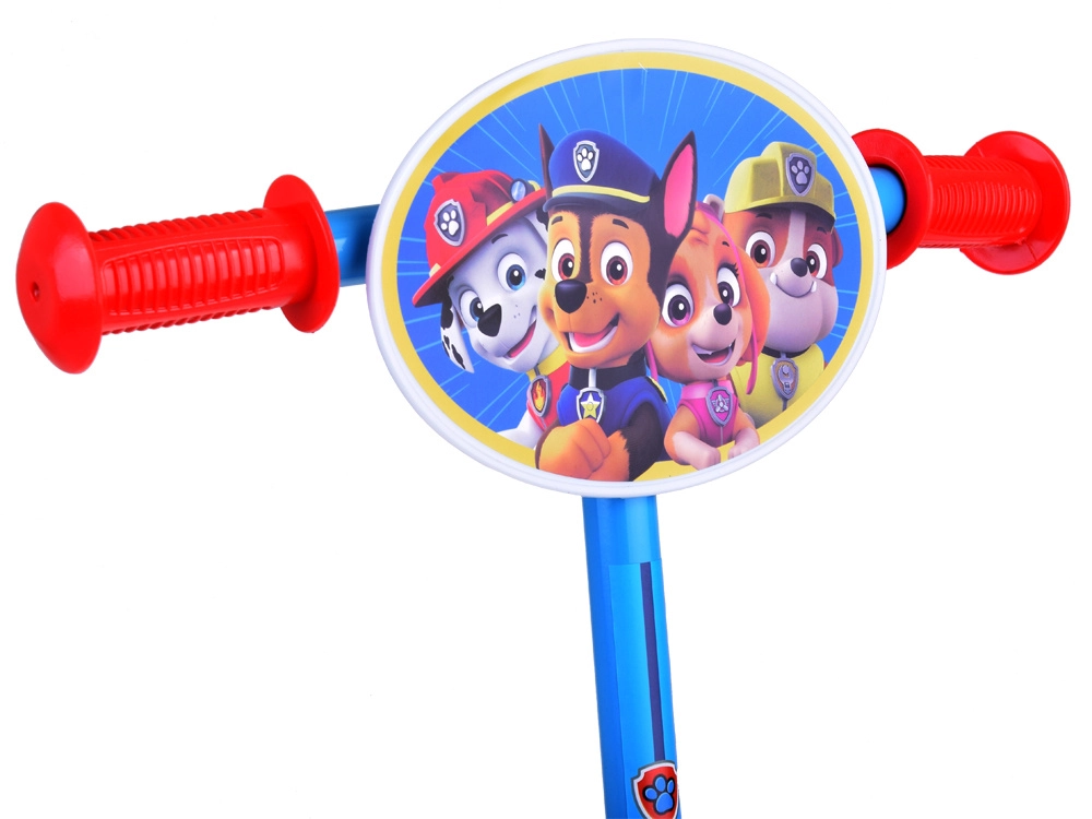 Der Roller in attraktiver rot‑blauer Farbkombination ist mit den beliebten Helden aus PAW PATROL verziert. Am Lenker befindet sich ein dekoratives Schild mit Grafik, das alle kleinen Fans erfreut.