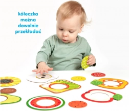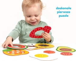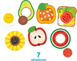 Das erste Puzzle für die Kleinsten, das nach Spaß duftet! Das Set enthält 7 große, zweiteilige Puzzles zum Thema Essen mit austauschbaren Scheiben. Dank des einfachen Einstecksystems ist das Puzzeln intuitiv und motivierend. Es fördert die Feinmotorik, die kontinuierliche Konzentration, das Form- und Farbverständnis sowie die natürliche Freude am Entdecken.