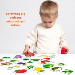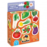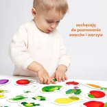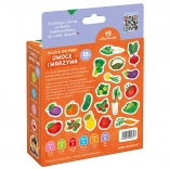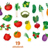 Auf den farbenfrohen Puzzles sind gesunde Leckereien aus Garten und Obstgarten abgebildet. Das Suchen und Zuordnen der Hälften ist vielseitiger Entwicklungsspaß, der die Auge-Hand-Koordination verbessert und spielerisch hilft, neue Wörter und Wissen über die Welt um uns herum zu lernen und zu festigen.