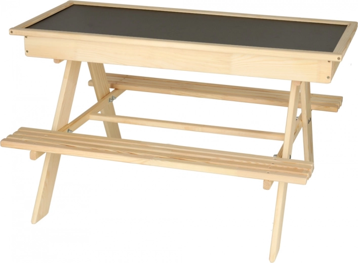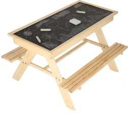 Das Kinder-Gartenset aus hochwertigem Holz bietet alles, was kleine Entdecker brauchen: einen bequemen Tisch mit zwei Bänken, eine praktische Aufbewahrungsbox, die als Sandkiste genutzt werden kann, und eine Tischabdeckung, die als Kreidetafel dient. Im Lieferumfang sind Kreiden und ein Schwamm enthalten, damit der Spaß sofort beginnen kann.