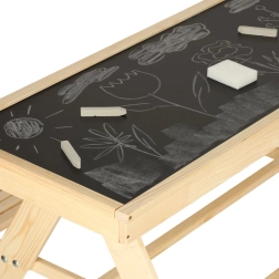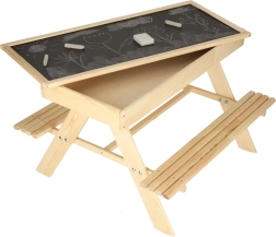 Dank der kompakten Maße eignet sich das Set für Terrasse, Balkon und kleinere Gärten. Stabile Konstruktion und robuste Holzverarbeitung gewährleisten Langlebigkeit und eine sichere Nutzung durch Kinder. Die multifunktionale Lösung fördert Kreativität, Lernen und gemeinsames Spielen.