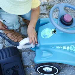 Die durchdachte Konstruktion mit niedrigem Schwerpunkt und robusten Rädern sorgt für ein stabiles Fahrverhalten auch auf längeren Strecken. Die praktische Öse vorne und die Anhänger-Kupplung hinten erweitern die Spielmöglichkeiten. Das Lenkrad mit Hupe fördert die Motorik und vermittelt Kindern die Grundlagen des Fahrens. Das Laufrad ist kompatibel mit Anhängern und Zubehör der BIG BOBBY CAR Reihe (Classic, New, Next, Neo).