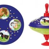 Das Design mit fröhlichen Pferdeillustrationen überzeugt auf den ersten Blick, während die kompakte Größe von 19 cm perfekt in kleine Kinderhände passt. Das Spiel mit dem Kreisel fördert Vorstellungskraft, Geduld und bringt Freude am Entdecken von Bewegung.