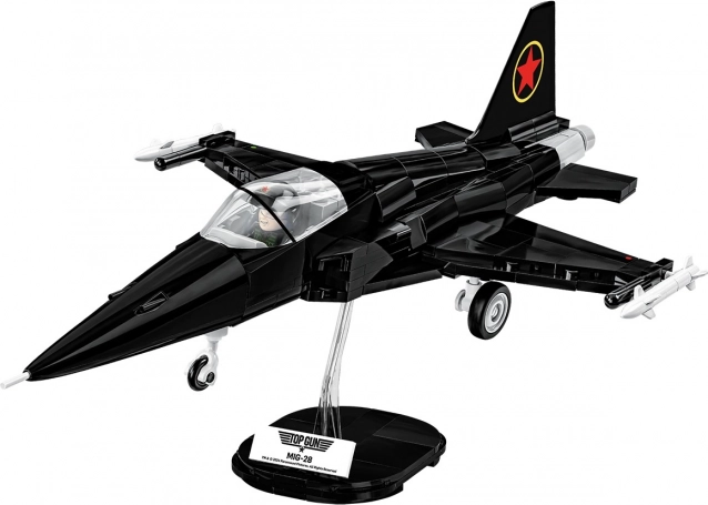 Aus 332 Bauteilen der Marke COBI entsteht ein beeindruckendes Modell mit charakteristischer schwarzer Oberfläche und roten Stern-Emblemen, das aussieht, als käme es direkt aus dem Film geflogen. Das Modell umfasst bewegliche Elemente wie Flügel, abnehmbare Fahrwerksräder und ein zu öffnendes Cockpit mit einer Pilotenfigur samt ikonischem roten Stern auf dem Helm. Selbstverständlich dabei sind ein Baustein-Standfuß und eine Tafel mit dem offiziellen Top-Gun-Filmlogo.