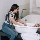 Die ergonomische Badeschale stützt Neugeborene und erleichtert das Baden,