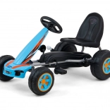 Der ergonomische Sitz mit Rückenlehne bietet eine 2-stufige Einstellung des Abstands zum Lenkrad, sodass das Kart mit dem Kind mitwächst. Der Pedalantrieb ermöglicht Fahren vorwärts und rückwärts, während die Handbremse ein zuverlässiges Anhalten gewährleistet. Das Produkt ist aus sicheren Materialien gefertigt und CE-zertifiziert.