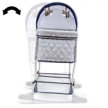Die Funktionen Wiege und Bettchen lassen sich dank der intuitiven Bedienung leicht wechseln. Die Bezüge von Dach und Tragewanne können zum schonenden Waschen abgenommen werden. Die weiche Matratze sorgt für Komfort und einen angenehmen Schlaf des Kindes.