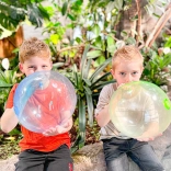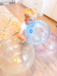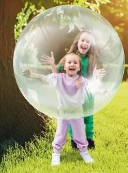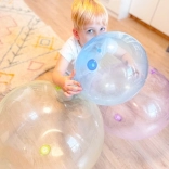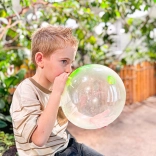 Die transparente und farbige Ausführung verleiht dem Spiel einen Hauch von Magie – die Blase ist weich im Griff und dennoch ausreichend stabil für ausgelassenes Toben. Sie lässt sich leicht auf- und ablassen und ist damit ideal für unterwegs und den täglichen Spaß.