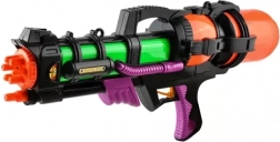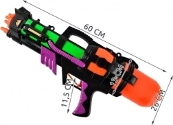 Diese Wasserpistole kombiniert Größe, Leistung und Komfort. Der große Tank mit 1,25 Liter verlängert das Spiel ohne häufiges Nachfüllen und die Reichweite von ca. 6 Metern sorgt für einen eindrucksvollen Wasserstrahl. Die Bedienung ist einfach: Tank abschrauben, mit Wasser füllen, verschließen und mit dem unteren Schieberegler pumpen – schon ist sie einsatzbereit.