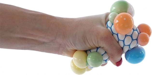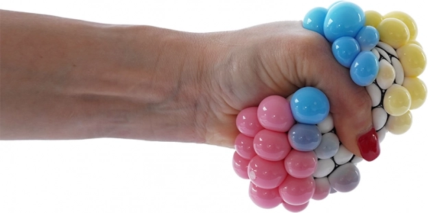 Bist du gestresst? Nimm den Ball und knete ihn. Beim Drücken kommen regenbogenfarbene Bläschen heraus.
