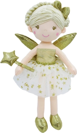 Die Stoffpuppe Fee ist eine ideale Begleiterin für den Alltag beim Spielen und Einschlafen. Die weiche Oberfläche lädt zum Kuscheln ein, während glitzernde Details und der zarte Look die Fantasie und magische Geschichten fördern. Dank aufgestickter Augen und präziser Nähte ist die Puppe bei normaler Nutzung sicher und langlebig.