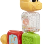 Texturierte Blöcke und ein Rassel fördern den Tast- und Hörsinn des Kindes.