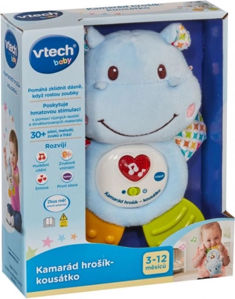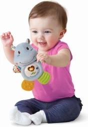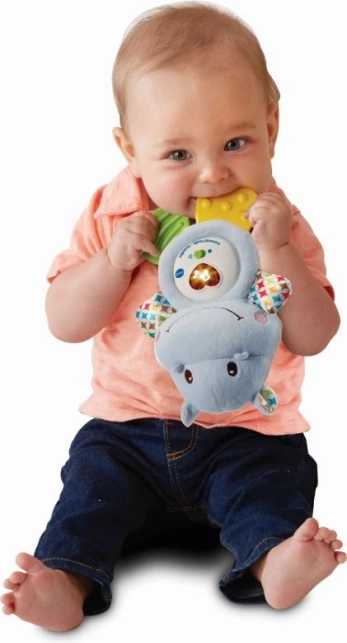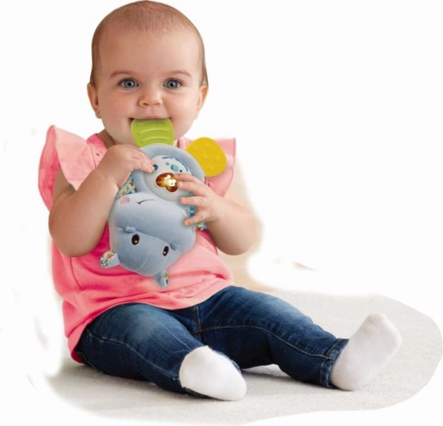 Vtech Nilpferdfreund ist so gestaltet, dass es sowohl Unterhaltung bietet als auch beim Zahnen der Kinder hilft. Das Spielzeug ist mit weichen Teilen zur Zahnfleischmassage und leicht zu greifenden Griffen ausgestattet, ideal für kleine Kinderhände. Das Nilpferd ist leicht und angenehm zu berühren; drückt man seinen Bauch mit dem leuchtenden Herz, leuchtet es auf und bietet interaktive Unterhaltung. Zusätzlich bietet das Spielzeug: