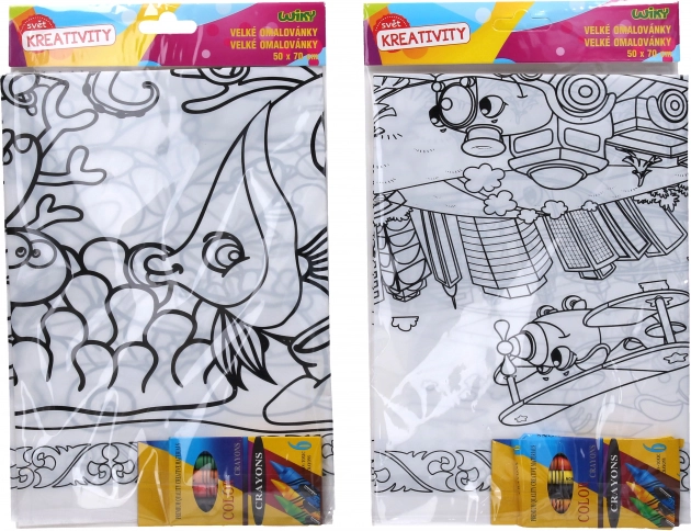Das große Format 50 × 70 cm bietet viel Platz zum Ausmalen, für gemeinsames Gestalten und zum Aufhängen der fertigen Bilder an der Wand. Im Set enthalten ist ein Satz von 6 hochwertigen Wachsmalstiften, sodass Kinder direkt nach dem Auspacken loslegen können.