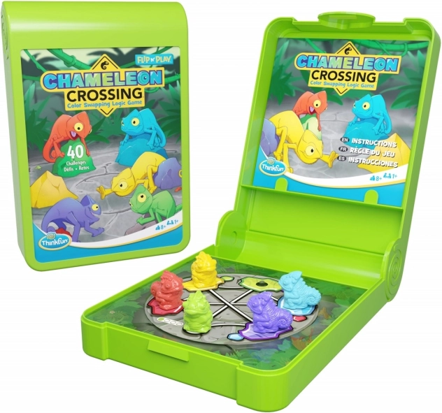 Begeben Sie sich auf ein Abenteuer mit dem Spiel ThinkFun Chameleon Crossing, bei dem es Ihre Aufgabe ist, fünf verlorene Chamäleons auf den richtigen Heimatstein zu führen. Das Spiel ist so konzipiert, dass es der ganzen Familie Spaß macht und gleichzeitig Kindern wichtige logische Fähigkeiten vermittelt.