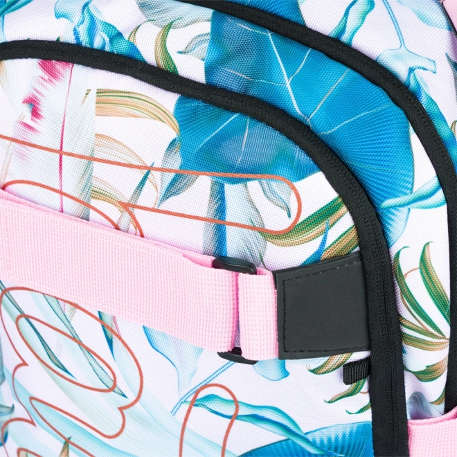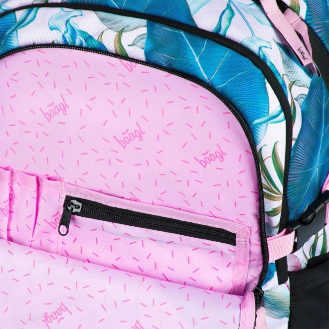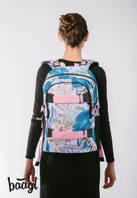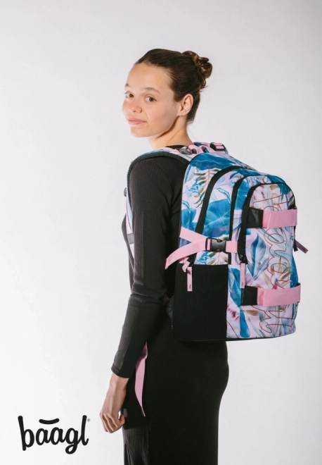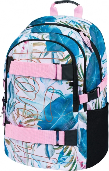 Der leichte und robuste Schulrucksack BAAGL Skate Leafs bietet 3 geräumige Fächer mit Organizer und einem Fach für ein 15''-Notebook, Riemen für ein Skateboard, Volumen 25 l, Gewicht nur 850 g und wasserabweisendes Material mit reflektierenden Elementen für sicheres Tragen im Alltag.