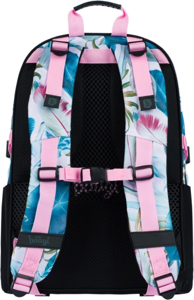 Der BAAGL Schulrucksack Skate Leafs vereint Stil mit Funktionalität. Ergonomisch geformte Rückenpartie und vollständig verstellbare Schulter-, Brust- und seitliche Kompressionsriemen gewährleisten hohen Tragekomfort und eine perfekte Anpassung an die Statur. Das robuste wasserabweisende Material schützt den Inhalt und reflektierende Elemente erhöhen die Sichtbarkeit in der Dämmerung.