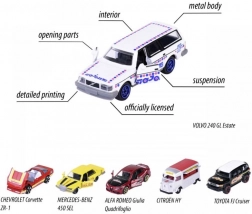 Jedes Modell bietet öffnende Teile, federnde Aufhängung und präzise Kunststoffscheinwerfer für noch mehr Realismus. Drucke mit dem zeittypischen Majorette-Logo erzählen die Geschichte der Marke und erfreuen alle Fans der Automobilhistorie.