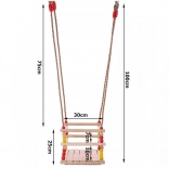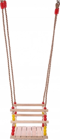 Starke, geflochtene Seile mit Ringen und Beschlägen sorgen für Stabilität und Sicherheit. Die kompakten Maße sparen Platz und die Schaukel lässt sich leicht transportieren oder verstauen. Bunte Perlen verleihen einen verspielten Look – Kinder werden die Schaukel schnell lieben.