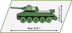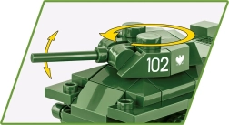 Das Mini-Modell aus COBI-Bausteinen besteht aus 101 hochwertigen Teilen und ist im Maßstab 1:72 gebaut. Fertiggestellt misst es 9 cm in der Länge und bewahrt alle wichtigen Merkmale seines historischen Vorbilds. An den Seiten des Turms befinden sich Aufschriften mit den Kennzeichnungen der Polnischen Armee im Osten und der Nummer 102. Der Panzer ist mit beweglichen Rädern ausgestattet, sodass er leicht bewegt werden kann, und der Turm ist drehbar.