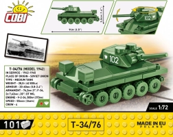 Dieses Modell ist ideal für den Einstieg in die Welt der COBI-Bausets. Der T-34/76 ist zugleich ein interessantes Modell und eine Ergänzung für Sammler. Er benötigt wenig Platz und findet leicht seinen Platz auf dem Schreibtisch zu Hause, im Büro oder im Bücherregal.