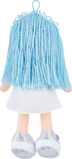 Bezaubernde Stoffpuppe, ideal als weiche Freundin für Ihr Kind. Die Welle aus blauen Haaren und das strahlende Lächeln in ihrem Gesicht machen sie zu einem perfekten Kuschelspielzeug.