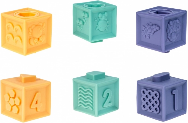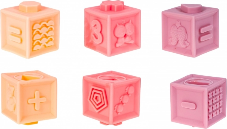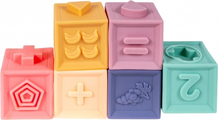 Die Bausteine laden zum Entdecken geprägter Muster ein und fördern die sensorischen Fähigkeiten des Kindes.