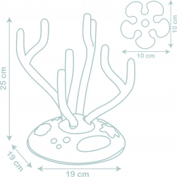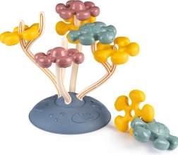 Kleines Smoby Korallenspielzeug ist aus acht farbenfrohen Plastikelementen gefertigt, die an dekorative achtbeinige und schildkrötenförmige Objekte erinnern. Kinder können die Teile leicht miteinander verbinden und deren Anordnung auf den Ästen des Baumes ändern, was ihre Kreativität fördert.