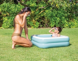 Machen Sie Kindern eine Freude mit einem eigenen Planschbecken, das in wenigen Minuten aufgebaut ist. Die quadratische Konstruktion mit höherem Rand ist stabil und bequem, während der aufblasbare Boden Stöße dämpft und den Komfort beim Sitzen und Spielen erhöht. Dank der kompakten Größe ist das Becken ideal für Kleinkinder und Vorschulkinder.