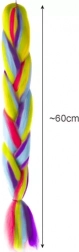 Sie möchten eine farbige Veränderung ohne dauerhafte Verpflichtungen? Die synthetischen Regenbogen-Zöpfe ermöglichen eine schnelle und schonende Typveränderung. Die Fasern sind matt, wirken nicht künstlich und dank ihrer Dichte sowie der Länge von 60 cm lassen sich sowohl ausdrucksstarke als auch dezente Frisuren gestalten. Die Zöpfe sind angenehm, weich und extrem leicht, wodurch sie sich den ganzen Tag über komfortabel tragen lassen.