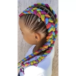 Fröhliche Regenbogen-Nuancen verleihen der Frisur Volumen und Ausdruck. Ideal für Festivals, Partys und verspielte Alltags-Looks.