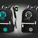Rucksack mit Musikmotiv und reflektierenden Elementen, ideal für Studenten.