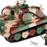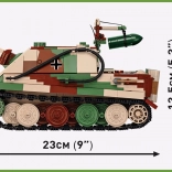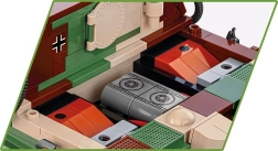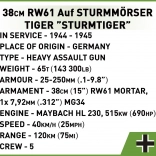 Mit diesem Bausatz können Sie einen Sturmtiger, eine deutsche Sturmhaubitze aus dem Zweiten Weltkrieg, gebaut auf dem Fahrgestell des PzKpfw VI Tiger, bauen. Das Modell im Maßstab 1:28 besteht aus 1100 hochwertigen Elementen, die reichlich Details wie zum Beispiel funktionsfähige Ketten und eine schwenkbare Kanone bieten. Das Set enthält auch ein herausnehmbares Mini-Modell des Motors, das unter der Wartungsklappe platziert werden kann.