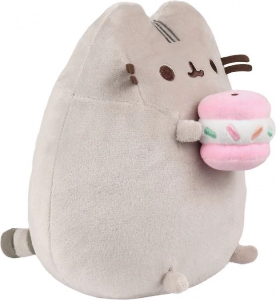 Dieses stylische Plüschtier bringt die beliebte Katze Pusheen in einer niedlichen Variante mit rosa Macaron. Es besteht aus angenehm weichem Material, das direkt zum Kuscheln einlädt, und wirkt dank sorgfältig gestickter Details hochwertig und sicher.
