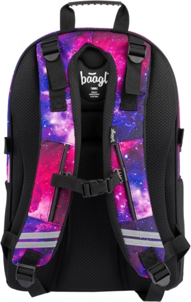 Entdecken Sie die perfekte Kombination aus Funktionalität und Stil. Das Schulset BAAGL Skate Galaxy bietet einen strapazierfähigen Rucksack mit dreiteiliger Aufteilung, Organizer und gepolstertem Fach für einen 15"-Laptop oder ein Tablet. Ergonomisch geformte Rückenpolster, vollständig verstellbare Schulter-, Brust- und seitliche Kompressionsgurte sorgen für gesundes und bequemes Tragen den ganzen Tag. Vordere Gurte dienen zur Befestigung eines Skateboards, seitliche elastische Taschen fassen eine Trinkflasche und reflektierende Elemente erhöhen die Sichtbarkeit.