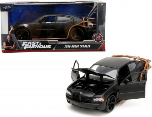 Metallisches Automodell Dodge Charger im Maßstab 1:24 aus dem ikonischen Film The Fast and the Furious. Dieses Modell bietet öffnende Türen, Kofferraum und Motorhaube für ein authentisches Erlebnis.