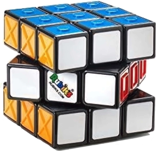 Der 3x3 Rubik’s Sensory Cube bringt das legendäre Puzzle in einer zugänglichen Form mit Reliefmustern auf jeder Farbe. Die Texturen – Punkte (Gelb), Quadrate (Rot), volle Kreise (Blau), Ringe (Grün), Kreuze (Orange) und glatt (Weiß) – ermöglichen die Unterscheidung der Seiten auch durch Tasten.