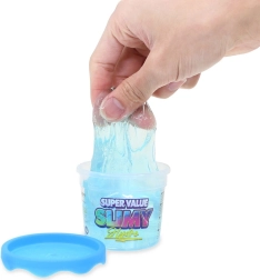 Der wiederverschließbare, transparente Becher hält den Slime länger frisch und spielbereit.