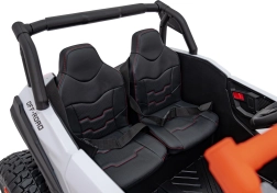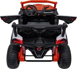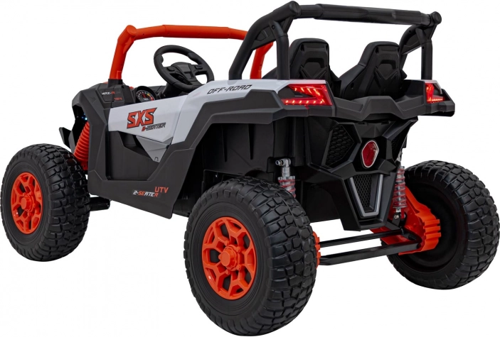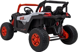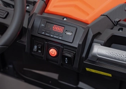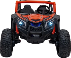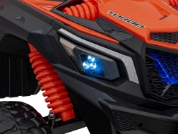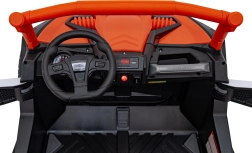 Offroad-Fahrzeug UTV X3 in einem attraktiven Orangeton ist ideal für alle kleinen Abenteurer, die die Kraft und den Spaß des Geländefahrens erleben möchten. Dieses Fahrzeug ist mit vier Motoren mit je 200 W ausgestattet, was ausreichend Leistung für das Gelände gewährleistet.