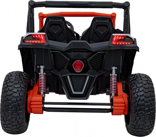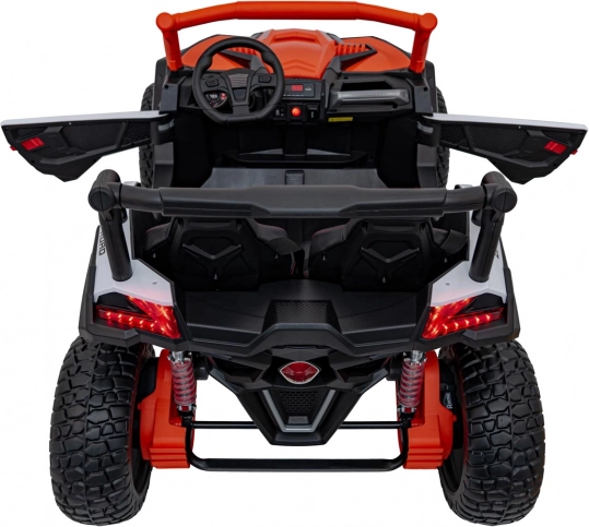 Kaufen Sie das Offroad-Fahrzeug UTV X3 in Orange für großartige Geländeerlebnisse für Kinder – mit 4x200W Motoren, LED-Beleuchtung und erweitertem Audio-Panel.