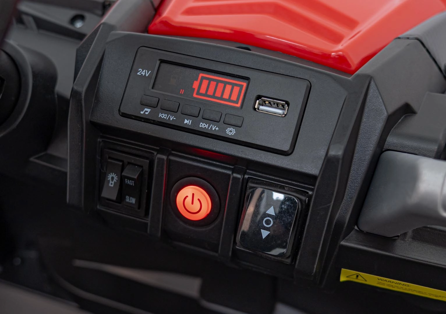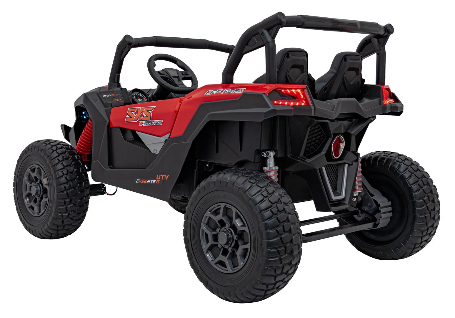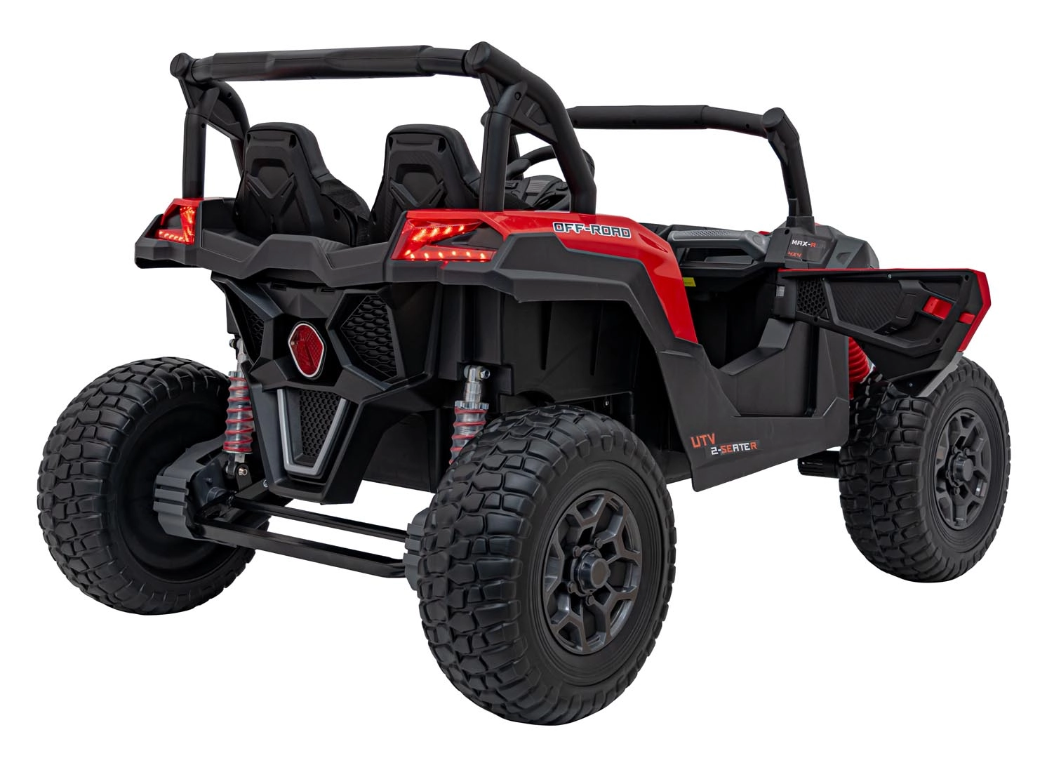 Das robuste elektrische Kinderauto UTV X3 ist für Abenteuer im Gelände gemacht. Dank 24‑V‑Akku und vier starken 4×200‑W‑Motoren meistert es Unebenheiten, während die großen, weichen EVA‑Räder eine leise und komfortable Fahrt gewährleisten. Sanftes Anfahren, zwei Geschwindigkeiten und die Umschaltung vorwärts/rückwärts machen die Bedienung spaßig und zugleich sicher.