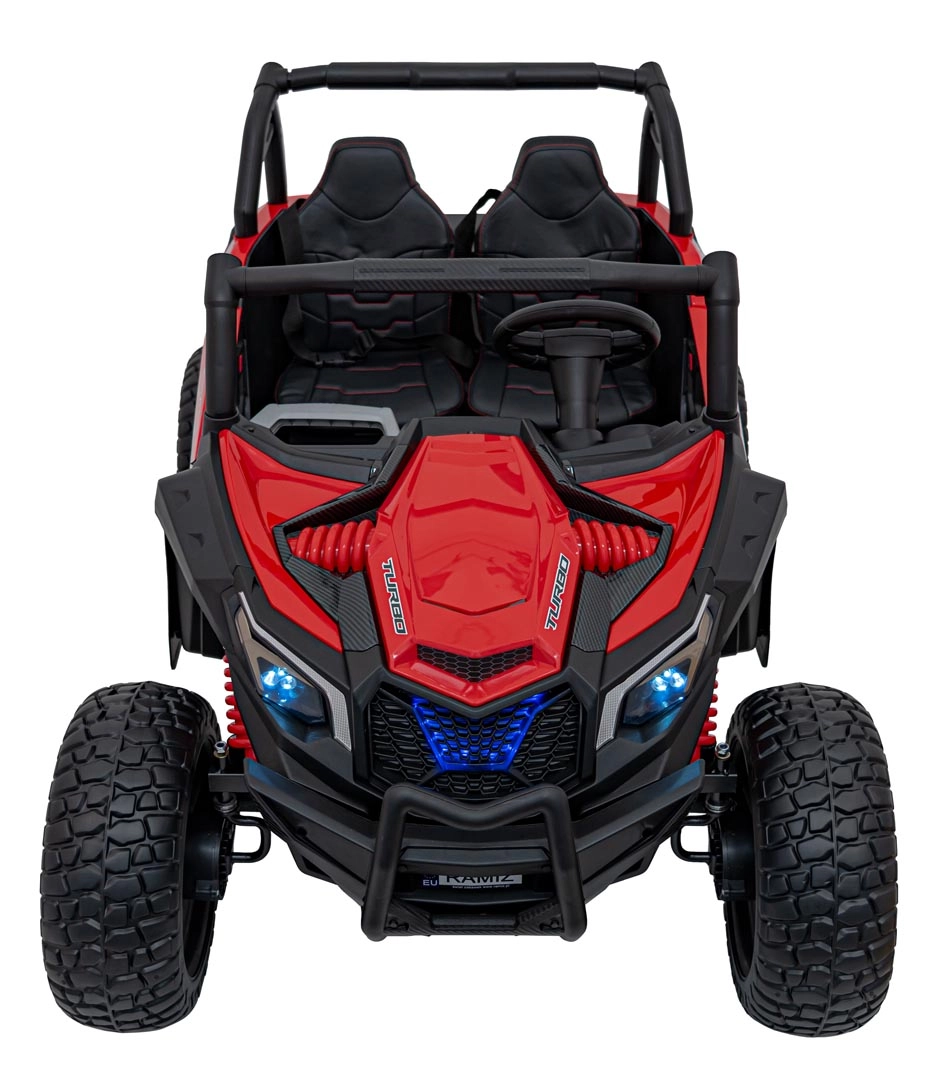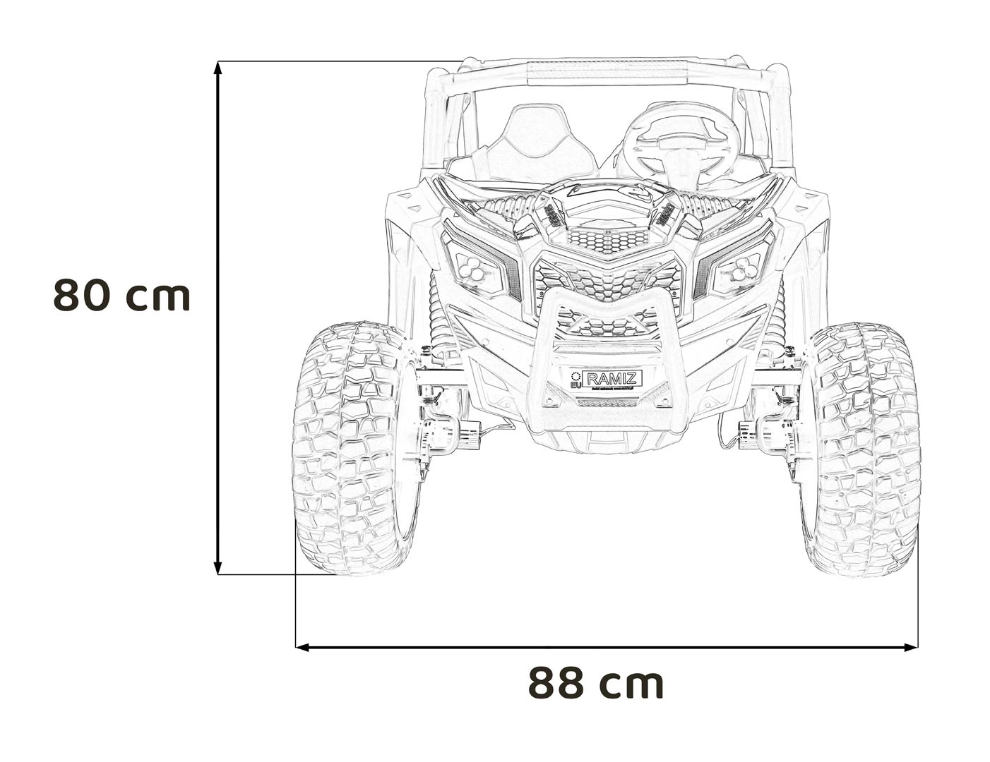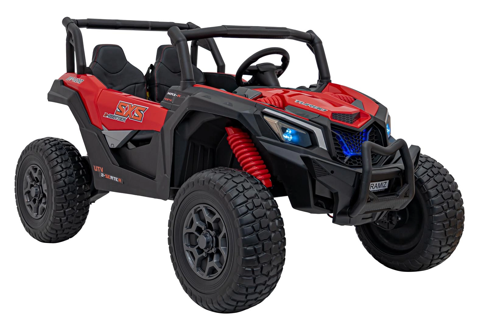 Das robuste elektrische Kinderauto UTV X3 ist für Abenteuer im Gelände gemacht. Dank 24‑V‑Akku und vier starken 4×200‑W‑Motoren meistert es Unebenheiten, während die großen, weichen EVA‑Räder eine leise und komfortable Fahrt gewährleisten. Sanftes Anfahren, zwei Geschwindigkeiten und die Umschaltung vorwärts/rückwärts machen die Bedienung spaßig und zugleich sicher.
