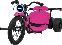 Dieses rosa Drift-Dreirad ist das ideale Geschenk für jedes Kind, das Abenteuer und schnelles Fahren liebt. Das Dreirad ist mit einem Paar leistungsstarker Motoren mit bis zu 25.000 U/min und einem 2x12V/10Ah Akku ausgestattet, der eine lange Laufzeit und reibungslose Fahrten gewährleistet.