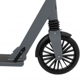 Für Ihre Sicherheit ist der Scooter mit einem doppelten Bremssystem ausgestattet – hintere Hand-Scheibenbremse und Fußbremse am Schutzblech. Die dreistufige Höhenverstellung des Lenkers (85–99 cm) passt sich Fahrern unterschiedlicher Größe an und die ergonomischen Gummigriffe sorgen auch auf längeren Strecken für Komfort.